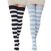 BABAHU Ladies Extra Long Cotton Striped Thigh High Socks, Black/White & Blue/...