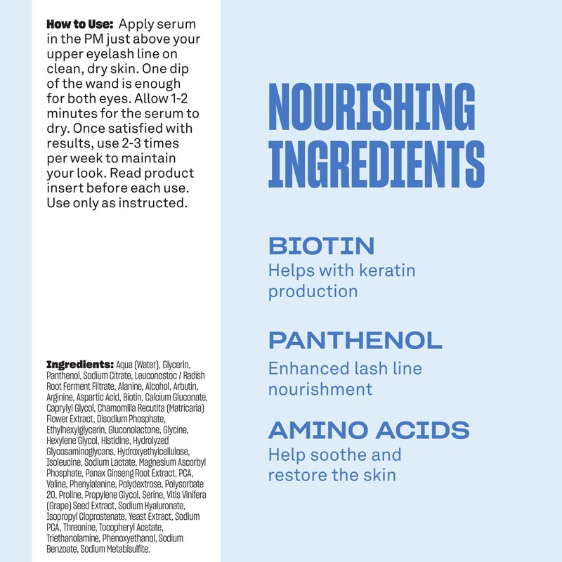 - EASY TO USE: Just apply a thin line to clean and dry lash line above the level of the skin. Only dip the wand once, this is enough for both eye lids. Allow 1-2 minutes for the serum to dry. Can be used on lashes, brows and with lash extensions.