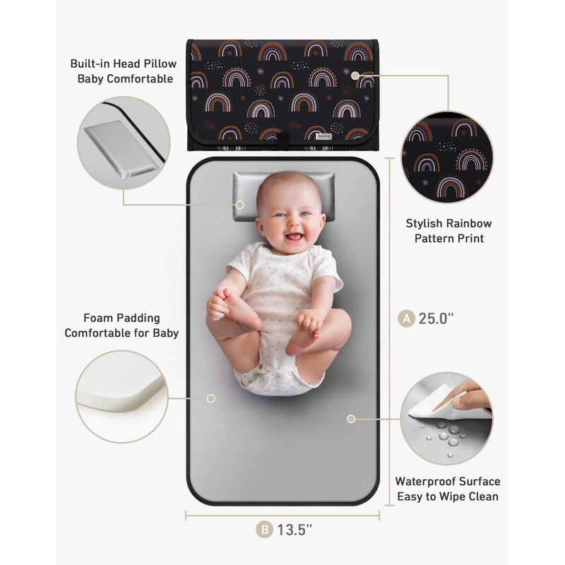 - STYLISH CUTE STYLE-Fashion beautiful pattern diaper changing mat made for modern parents. The boho sun moon rainbow pattern changing pad adds a touch of fun and whimsy to your baby's nursery or diaper bag. With a neutral dark green base color, it is suitable for both baby boys and girls, and it will be the envy of traveling with it