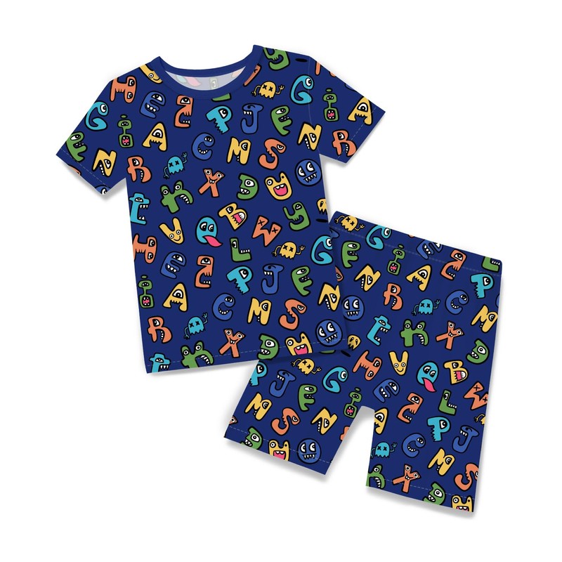 babee Reshinee Bamboo Viscose Toddler Alphabet Pajamas Boys Girls Kids Baby Cool Short Summer Pjs Set 3-4T Two Piece