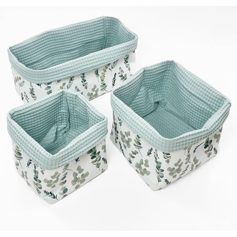 BABEES Storage Basket Changing Table Baby Basket Set of 3 Organiser Changing Table Utensilo Storage Box Bathroom (EUKALYPTUS)
