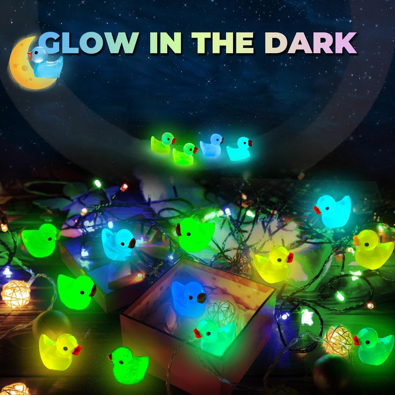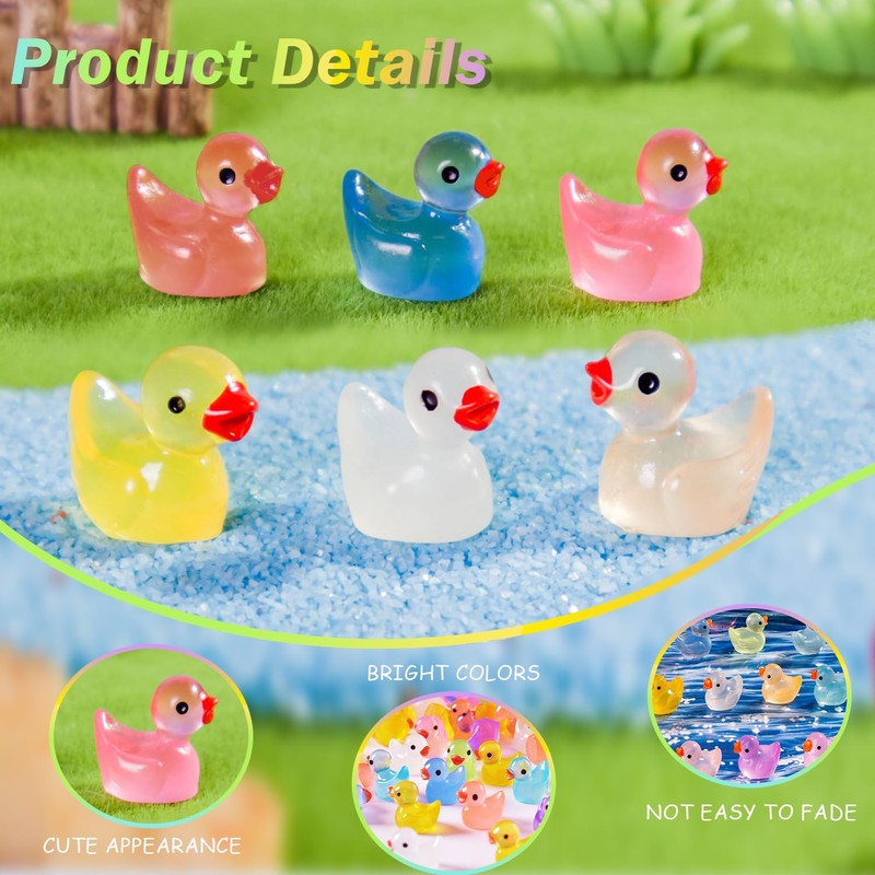 - Glow in The Dark Mini Resin Ducks: Crafted from premium luminous resin, these durable mini ducks are rustproof, water-resistant, and reusable. They are not easy to break, fade or deform. Moreover, these realistic mini duck figures can serve as goodie bag stuffers, miniature garden, landscape decorations