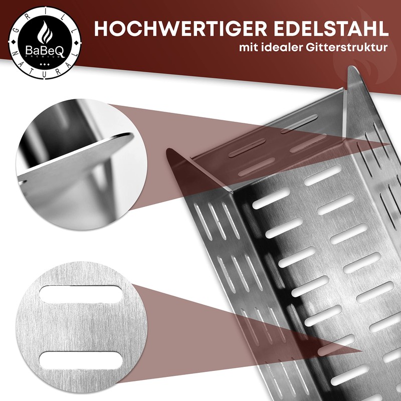 BABEQ - 3-in-1 Stainless Steel Grill Basket, Charcoal Basket, Smoking Basket (Square) for Vegetables, Meat, Fish, Coal, Smoking Chips – Vegetable Basket for Gas Grill, Electric Grill, Charcoal Grill –