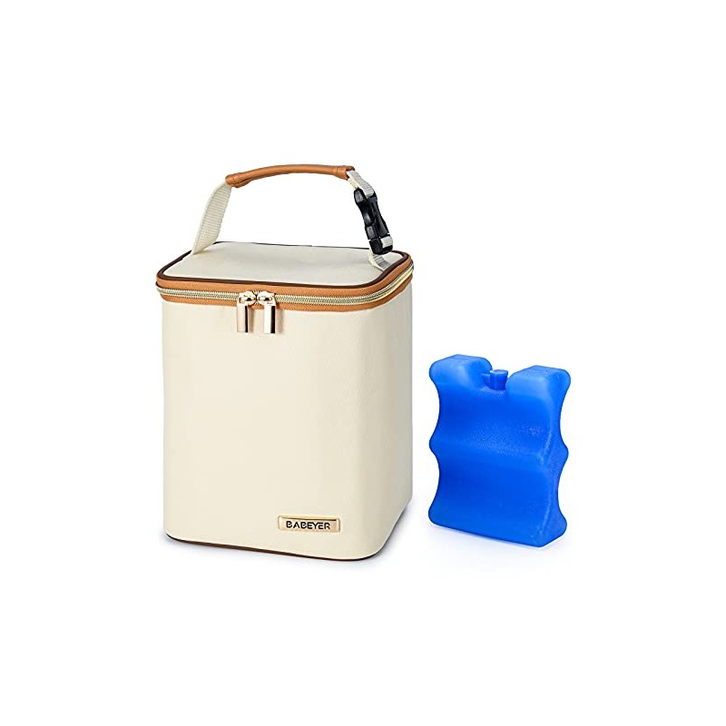 BABEYER Breastmilk Cooler Bag with Ice Pack Included, Baby Bottle Cooler Bag for 4 Large Baby Bottles (up to 270ml), Cream