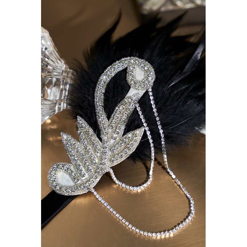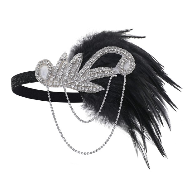 BABEYOND 1920s Flapper Headband Roaring 20s Great Gatsby Feather Headpiece Black