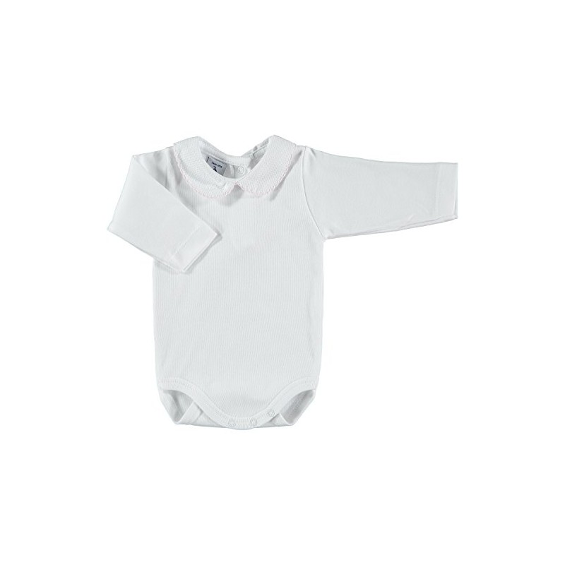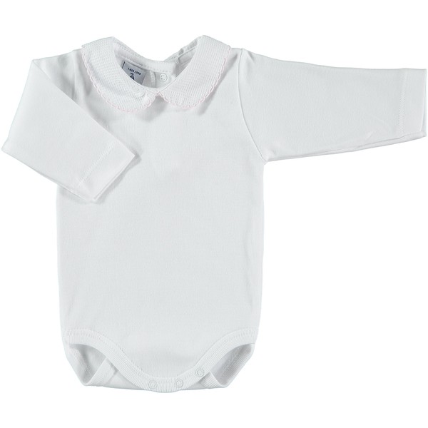 BABIDU Unisex Baby C.Polo Pique Bodysuit, White (White/Pink)