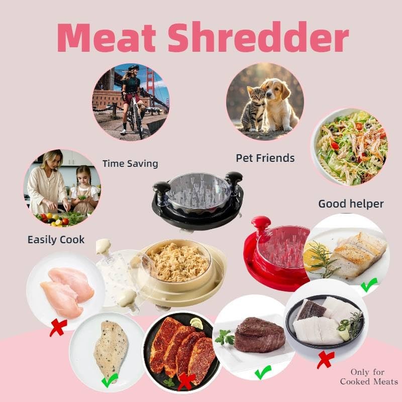 Babluble Chicken Shredder Large-11'' Chicken Breast Shredder Tool Twist with Brush&Squeegee,Visible Meat Shredder Machine,Anti-Slip Strip,BPA Free,Dishwasher Safe (Black)