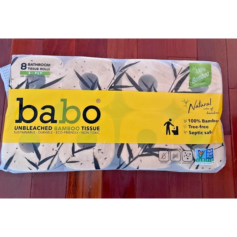 Babo 2 Babo Toilet Paper 100% Bamboo 3 Ply Unbleached 8ct. 200 Sheets