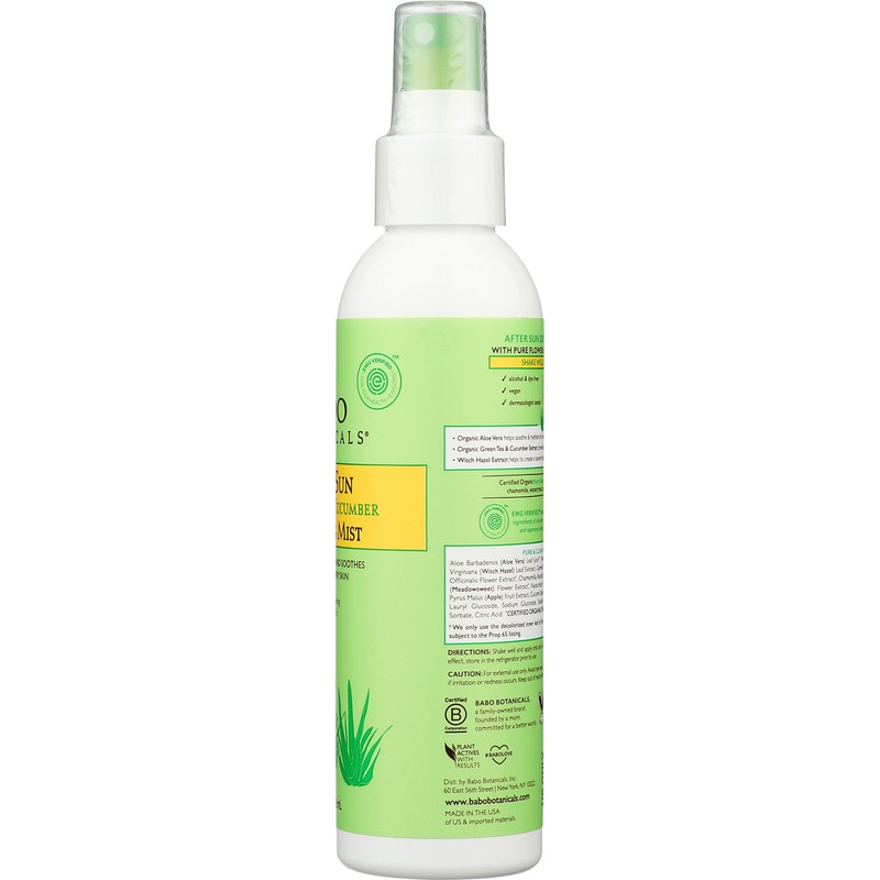 Babo Botanicals After Sun Mist Soothing Aloe Vera Cucumber 5.5 Oz