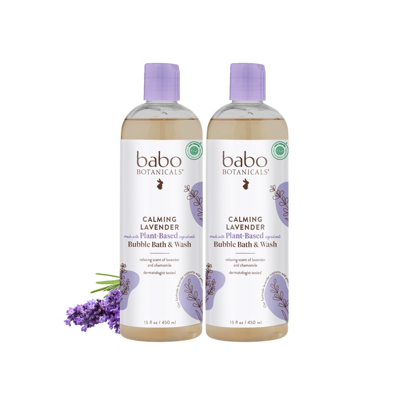 Babo Botanicals Calming Lavender 2-in-1 Bubble Bath & Wash - Relaxing Chamomile & Lavender - EWG Verified- Vegan- For all ages- Scented with Lavender Essential Oil - 2-Pack