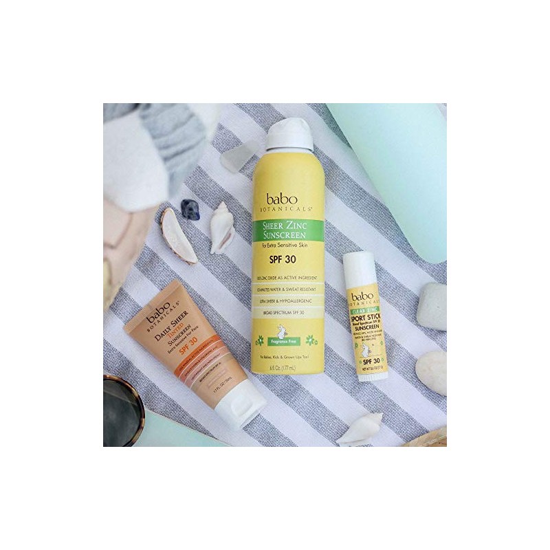 Babo Botanicals Sheer Zinc Mineral Sunscreen Sport Stick SPF30- Natural Zinc Oxide- Shea Butter- Fragrance-Free - Water Resistant - MADE SAFE Certified | Babo Botanicals