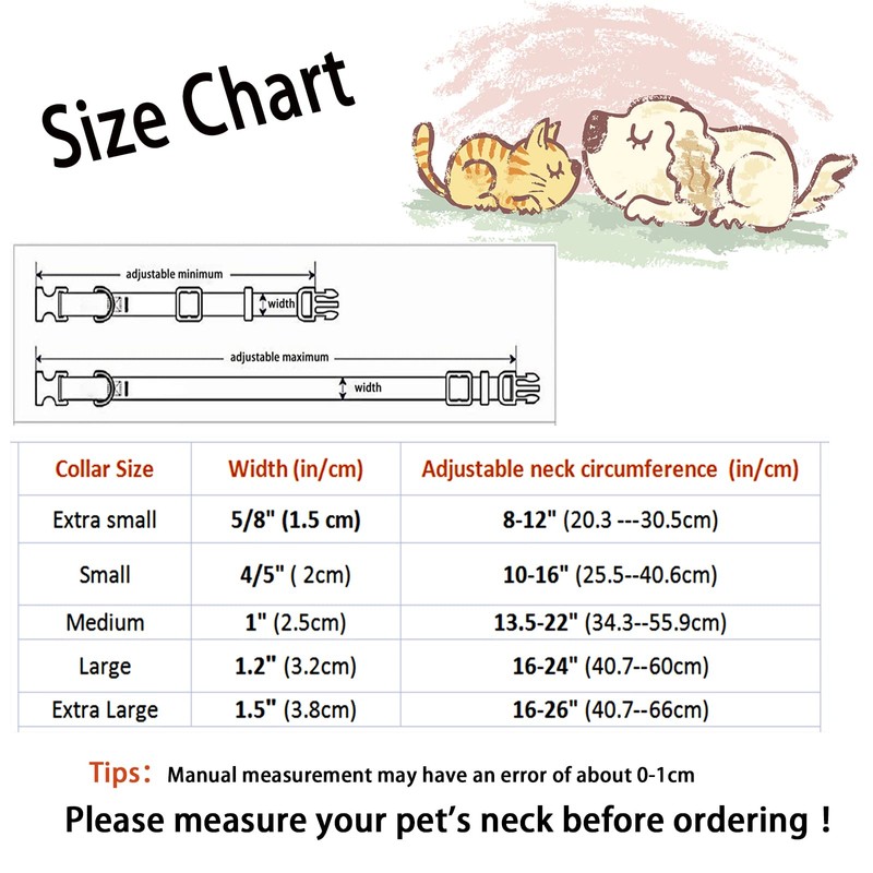 - Notice:Please use a soft tape measure or rope to measure your dog’s neck and make sure the right size before buy a dog collar. Please contact us if you have any questions, we will solve your question within 12 hours !