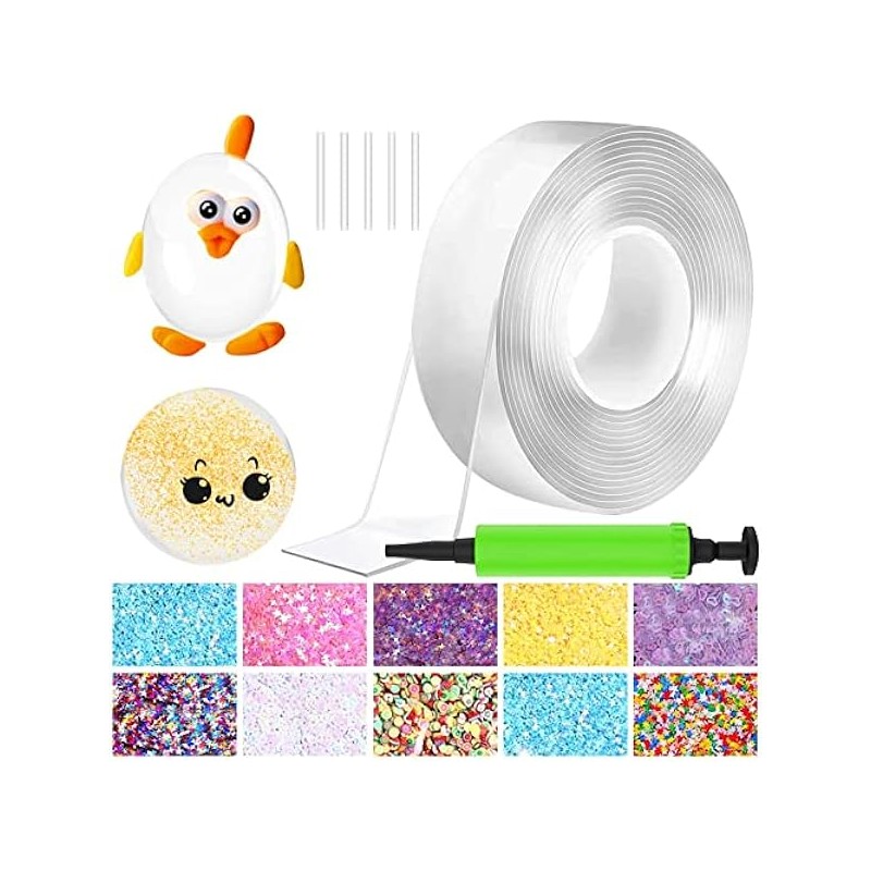 BABORUI Nano Bubbles Tape Kit, Nano Bubble Tape Toy Kit with Glitter and Balloon Inflator, Double Sided Super Elastic Bubble for Adult Party Favors Gifts Fidget Toy Craft