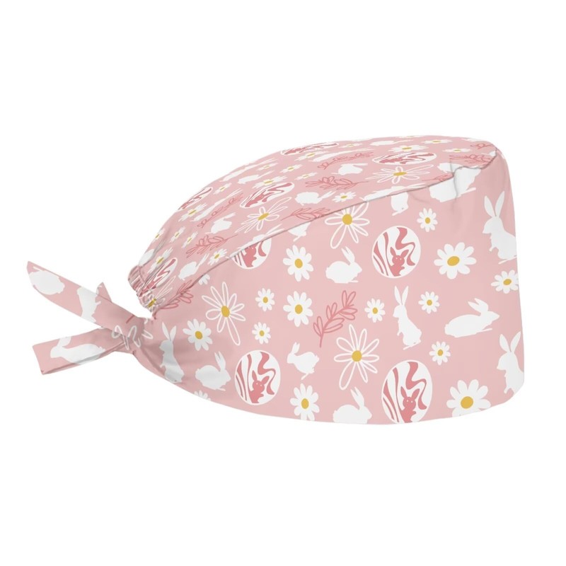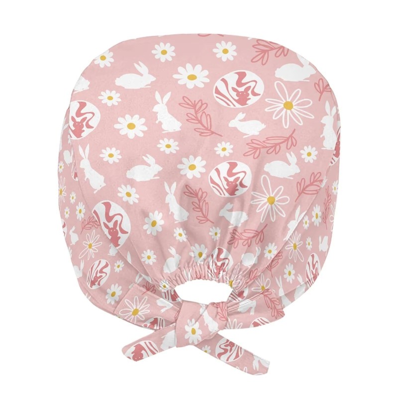 Babrukda Women Men Cap wih Sweatband Adjustable Tie Back Hat Dirtyproof Beanie, Daisy Floral Easter Rabbit, One Size