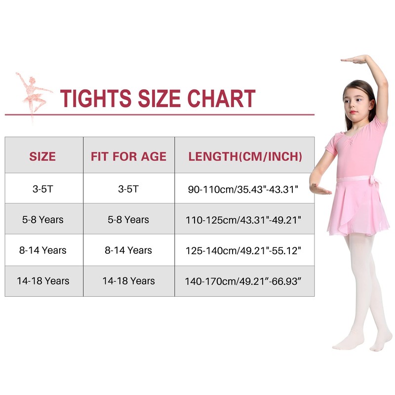 - About Material: The ballet tights for girl content 85% Nylon and 15% Spandex, with high elastic, give your baby girl most comfy wearing experience. High quality fabric is breathable, lightweight and skin-friendly, does no harm to your kids’ body.