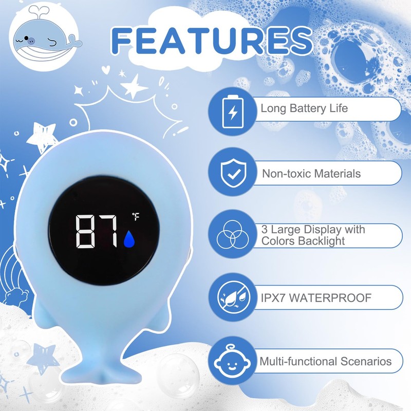 - 【𝑻𝒉𝒆 𝑩𝒆𝒔𝒕 𝑮𝒊𝒇𝒕𝒔 𝒇𝒐𝒓 𝑵𝒆𝒘𝒃𝒐𝒓𝒏𝒔】This cute whale bath tub thermometer makes for a perfect baby shower or newborn gift, delivering both warmth and care. Beyond practical use, its rounded, baby-safe design (with no sharp edges) ensures worry-free play.
