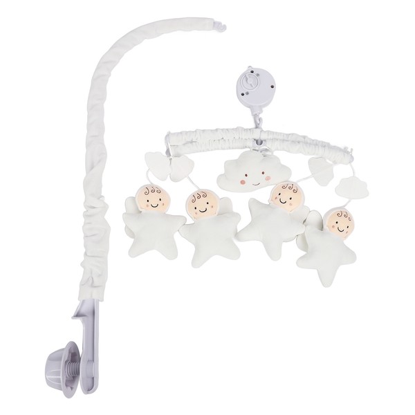 1、ROTATING DESIGN: The hanging baby bed bell features a rotating function that captivates and holds your baby's attention, stimulating their curiosity and helping with visual tracking skills. 2、BELL RATTLE: The baby bed bell includes a bell rattle feature that aids in comforting your baby, creating a relaxing environment for better sleep. 3、PLUSH MATERIAL: Crafted from soft plush material, the dangling toy attachments of the baby bed bell provide a comfortable and safe tactile experience for your baby. 4、VISUAL DEVELOPMENT: By hanging the bed bell on the crib rail, it helps guiding your baby's gaze and prevents eye deviation, promoting healthy visual development. 5、PORTABLE CONVENIENCE: Designed for easy transport and versatile use, the baby bed bell can be conveniently used at home or while traveling, offering comfort and companionship for your baby wherever you go.