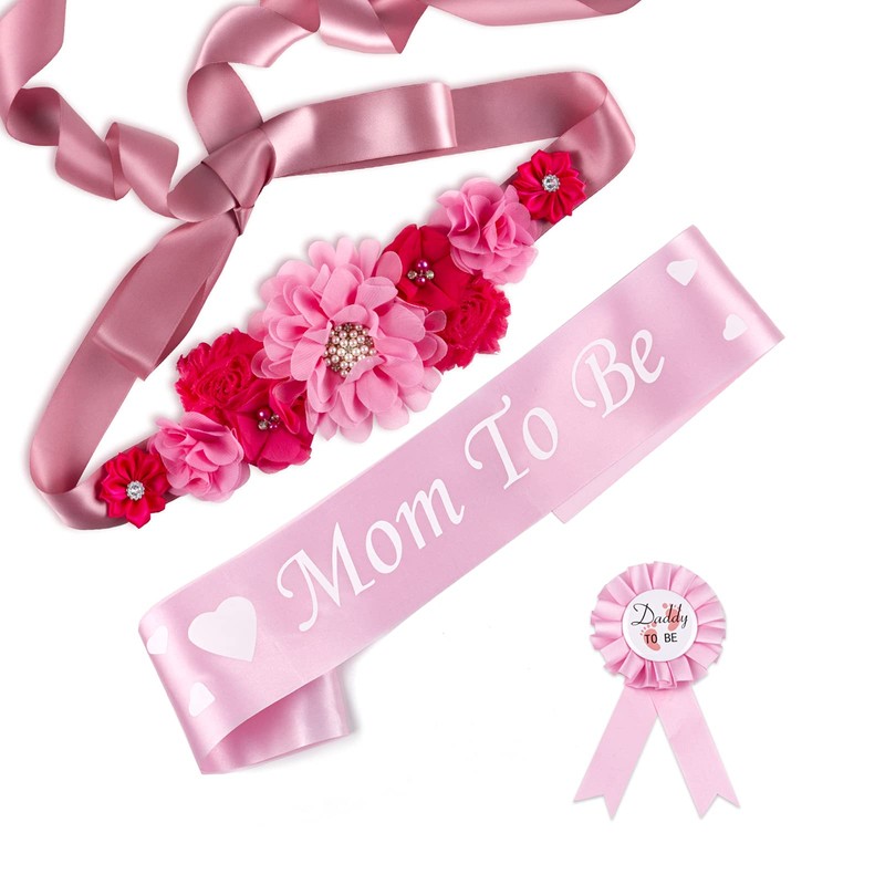 - MATERNITY SASH & PIN SET - The set includes 1x sash flower belt, 1x mom to be shoulder sash, and 1x daddy to be pin. The set will look great on every mom or daddy to be.