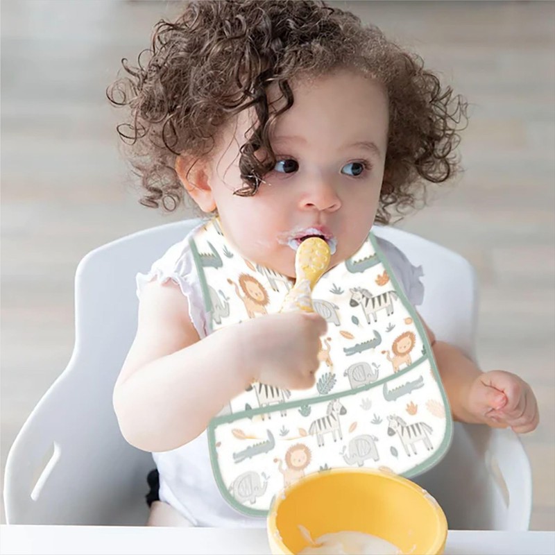 - Wipe Clean Baby Bib Is Made of High Quality PEVA Material Toddler Feeding Bib Is Reusable Reliable Durable Unisex Infant Bib Is Lightweight Non Toxic Sturdy Safe to Use Breathable Baby Bib Is Eco Friendly Indoor and Outdoor Use Baby Bib with Pocket Is Easy to Put and Take Off