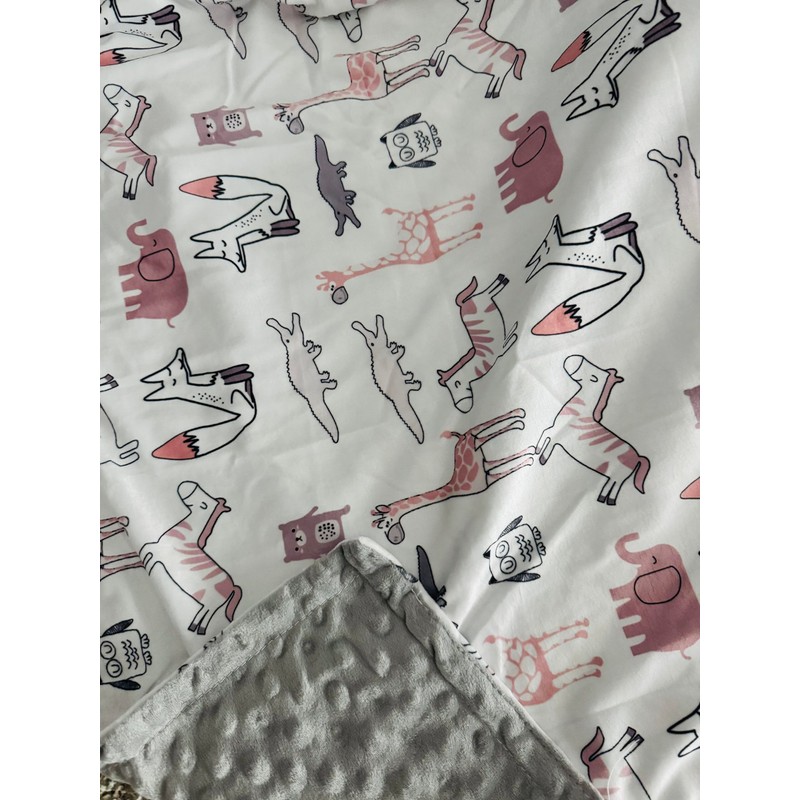 Baby Blanket All Season Newborn-Toddler with Animal Print, Soft Dot Backing, Grey and Pink Safari Design
