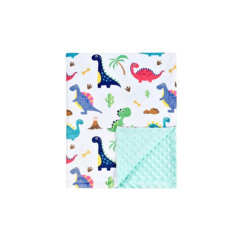 Baby Blanket Super Soft Minky Blanket Blue Rainbow Blanket with Dotted Backing for Newborns Nursery Stroller Receiving Toddlers Crib Bedding for Boy or Girl(30 x 40 Inch) (Dinosaur)