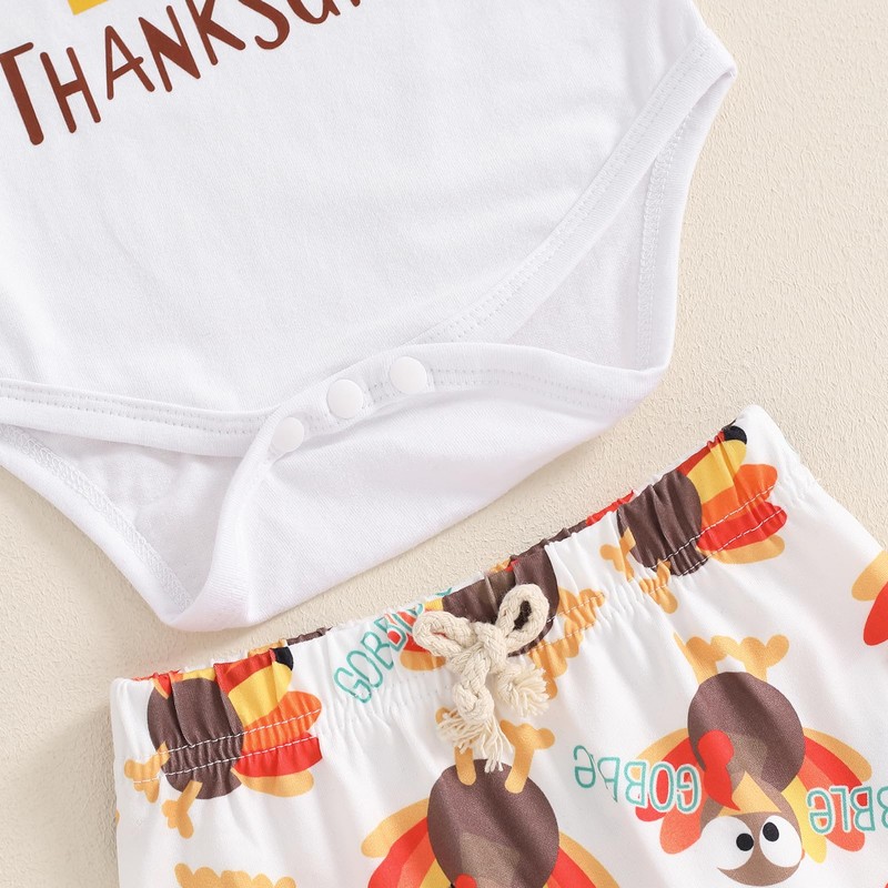 - Material: Baby thanksgiving romper and pants and hat 3pcs outfits set,cotton polyester;soft,skin-friendly and breathable fabric