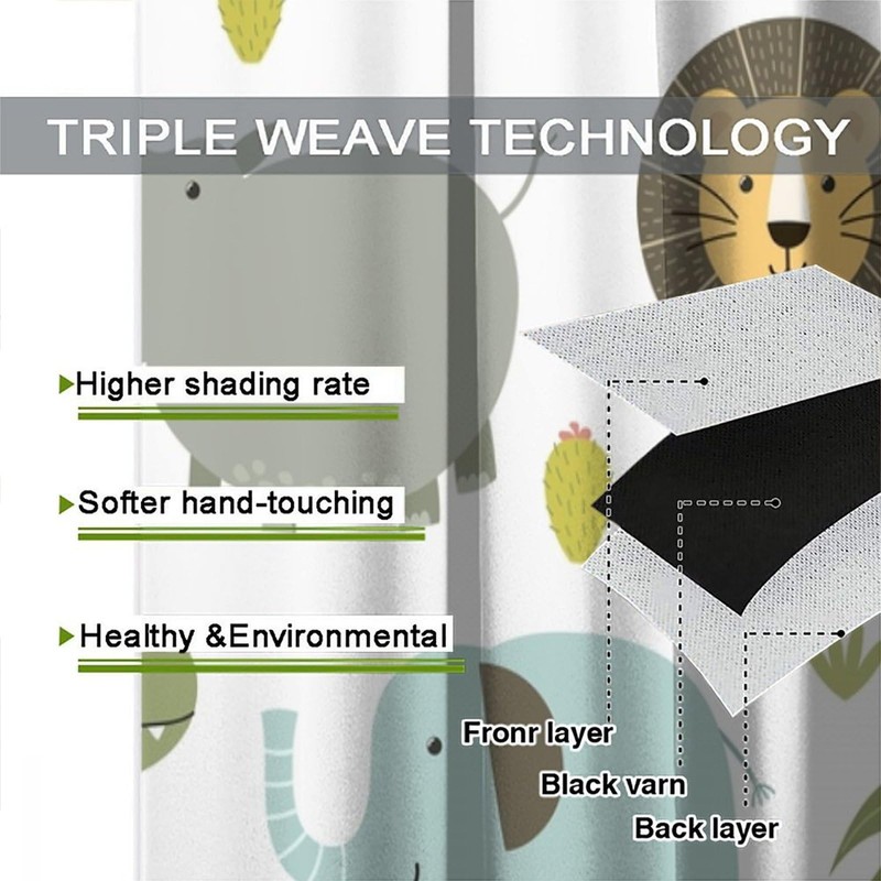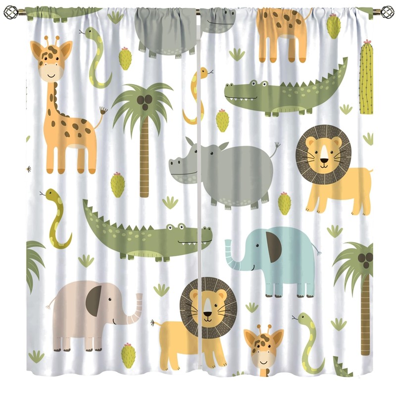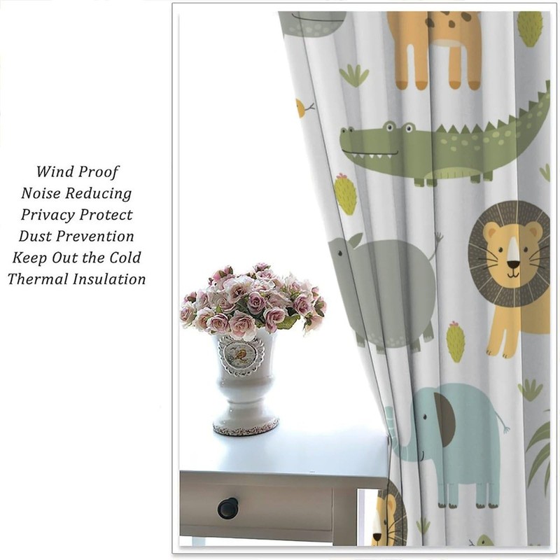 Baby Boy Safari Animals Curtains Woodland Jungle Lion Elephant Pattern Printed Rod Pocket Window Drapes for Living Room Bedroom Nursery Decoration 42"" W X 45"" L, Style-1