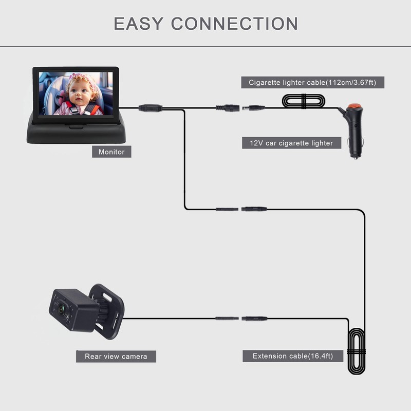 - 【Warm tips】 Please do not install this camera for car baby monitor on a modified car. Do not use more than 24V to power the product; we recommend using a 12V power source for the baby monitor car. We suggest using the included lighter adapter to power the baby mirror for car, which comes in the product box. Otherwise, there is a risk of damaging the product.