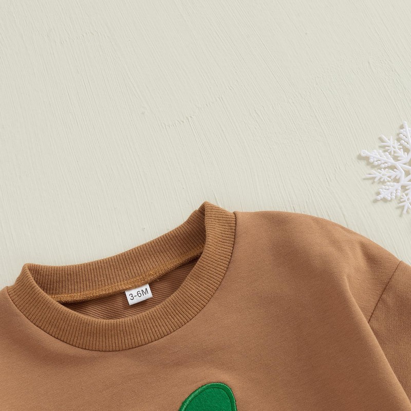 Baby Christmas Outfit Girl Boy Crewneck Sweatshirt Bubble Romper Sweater Jumpsuit Cute Fall Winter Clothes (Brown Candy, 0-3 Months)