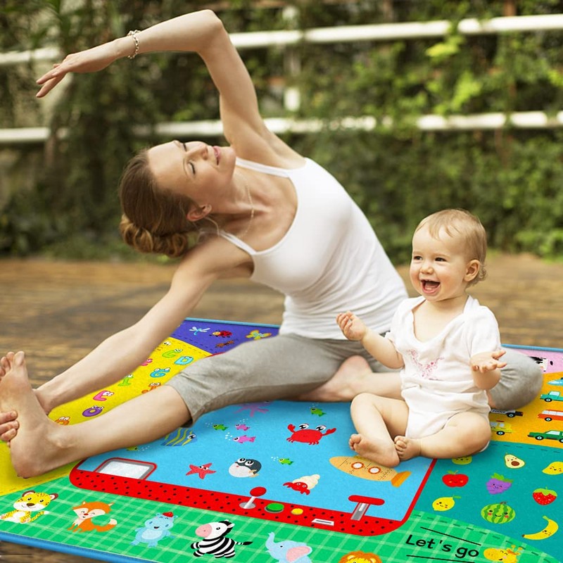 Baby Crawling Play Mat for Floor,Large Cotton Educational Tummy Time Area Rug , Foldable Non-Slip Super Soft Padded Playmat for Playing Gym Activity for Infants Toddlers Boys Girls