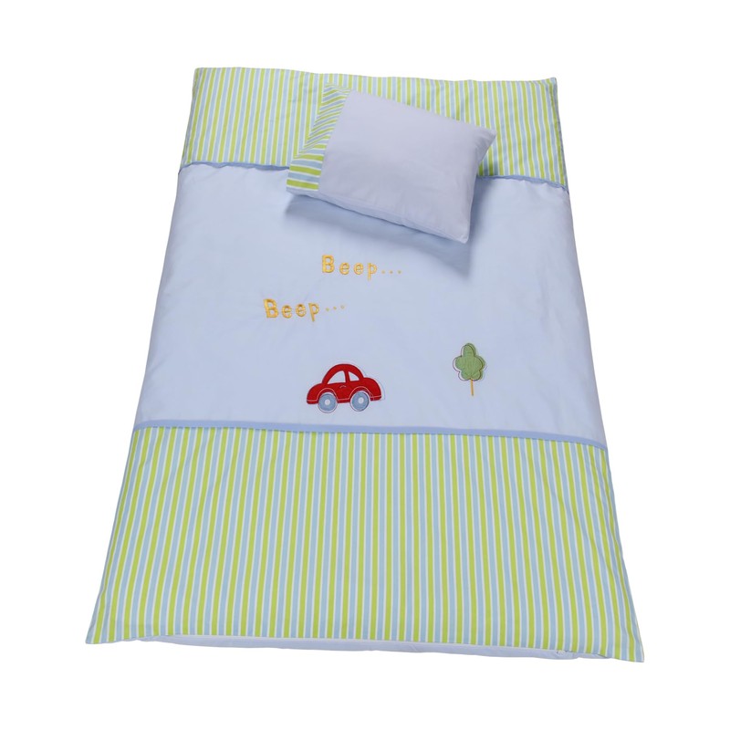 Our Crib Duvet Cover Set is made from 100% premium cotton poplin for soft, breathable comfort. The 2-piece set includes a 40x48” duvet cover and 12x18” pillowcase — perfect for crib and toddler beds. It features a headless zipper for enhanced safety, ensuring there are no small parts that could pose a risk.