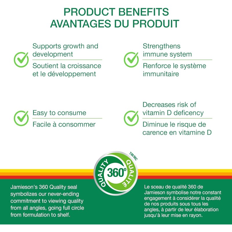 • SUPPORTS GROWTH AND DEVELOPMENT - Vitamin D helps to build strong bones and teeth; nurturing foundation for sustainable growth.