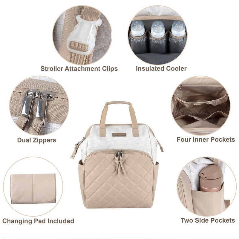 - MULTI-FUNCTION DIAPER BAG BACKPACK TOTE: This multifunction diaper bag backpack tote can be worn on your back with its’ padded shoulder straps as a backpack, carried by its top travel handles as a tote bag, and can even be secured to prams by its stroller clasps when traveling.