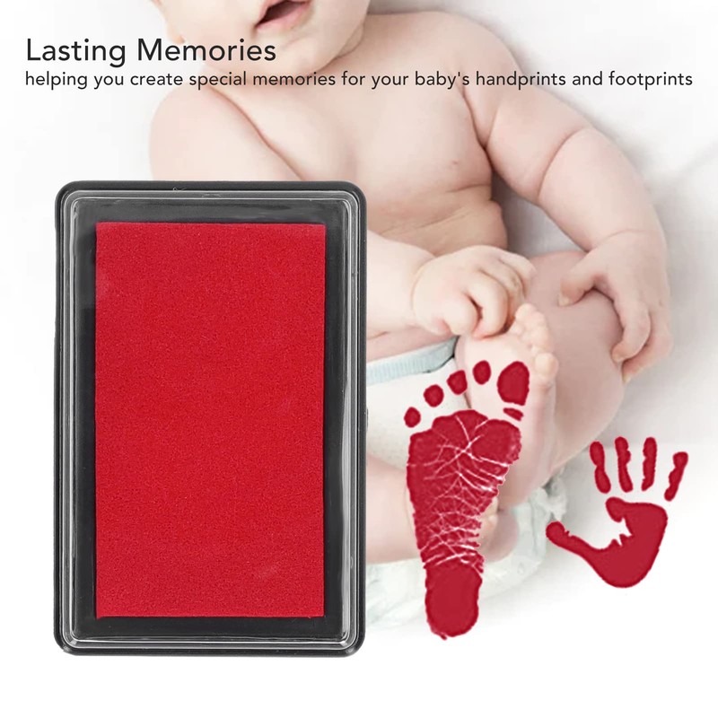 Baby Footprint Stamp Pad, Reusable Baby Handprint Footprint Maker Keepsake Set for Babies and Pets (Red Ink)