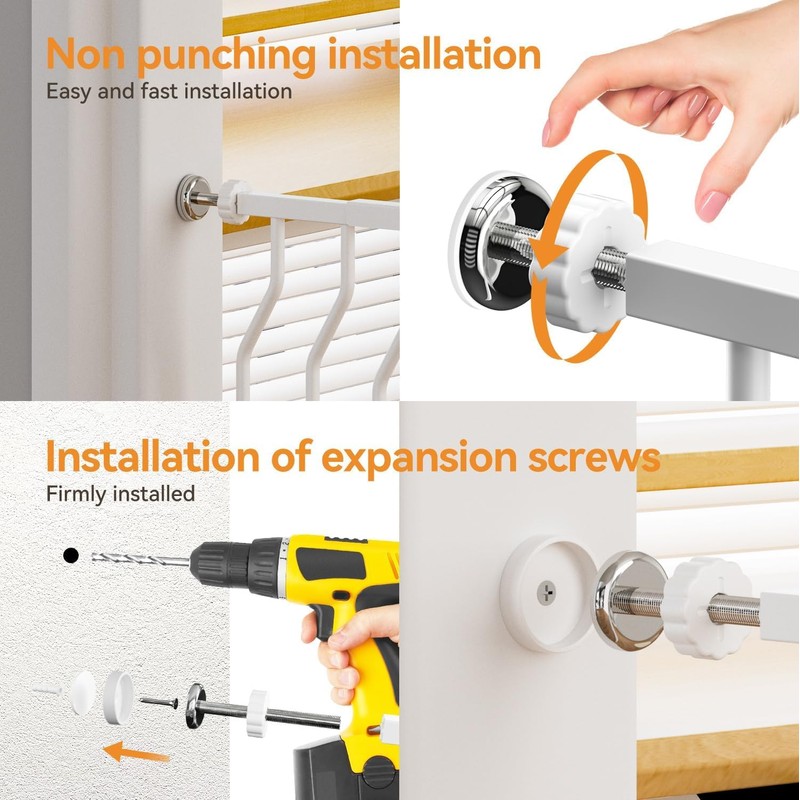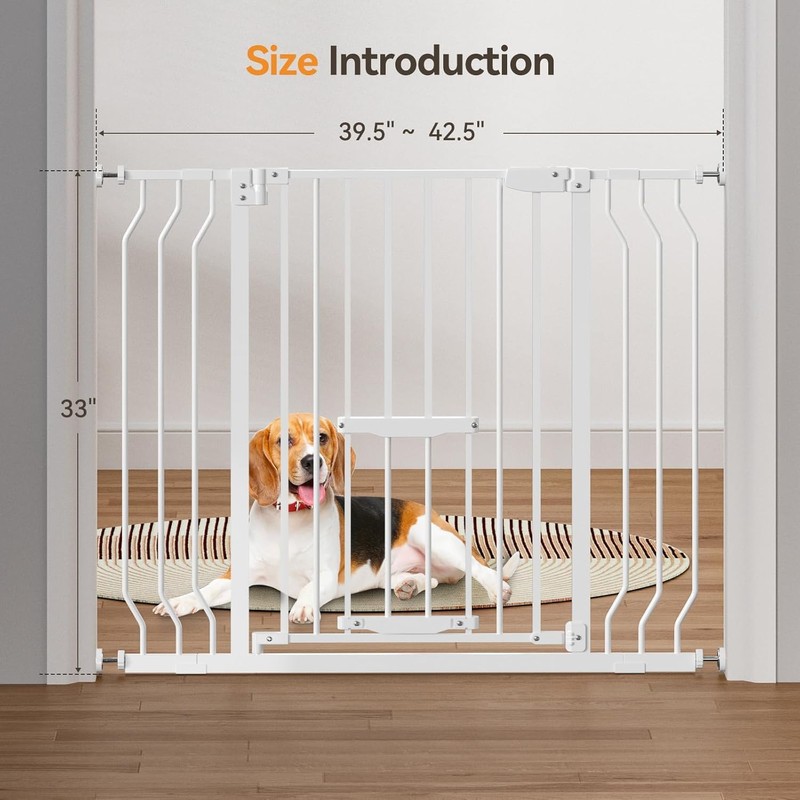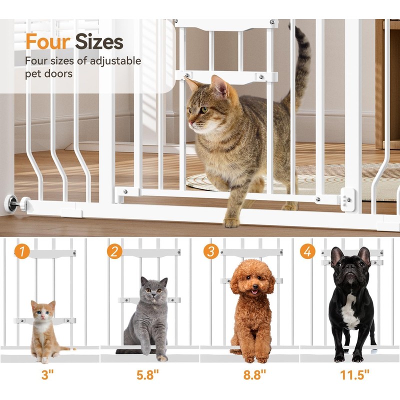 Baby Gates with Cat Door - Auto Close 29.5"-48.4" Safety Metal Dog Pet Gate for Doorway, Stairs, House, Walk Through Child Gate with Pet Door, includes 4 Wall Cups and 2 Extension Pieces