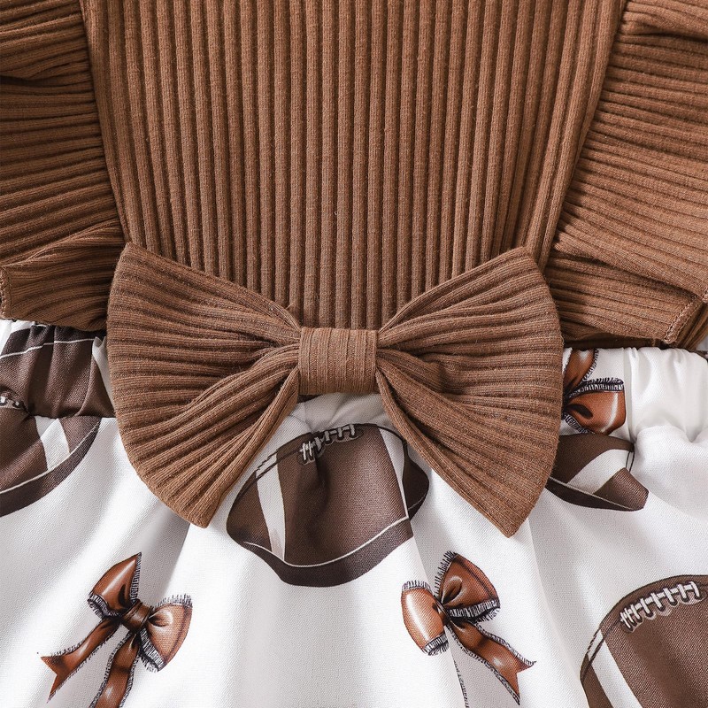 Baby Girl Clothes Newborn Romper Dress Football Ruffle Long Sleeve Bodysuit Infant Fall Winter Outfit With Headband 12-18Months