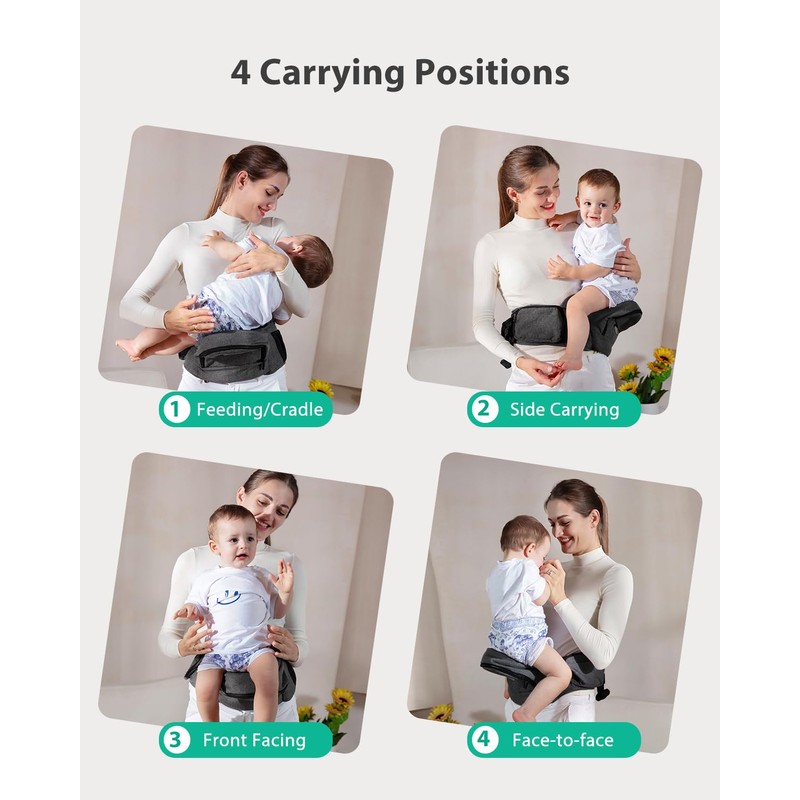 Baby Hip Seat Carrier, GROWNSY Ergonomic Hip Seat Baby Carrier with Multiple Pockets, Adjustable Extended Waistband for Newborns & Toddlers up to 50 lbs, Grey