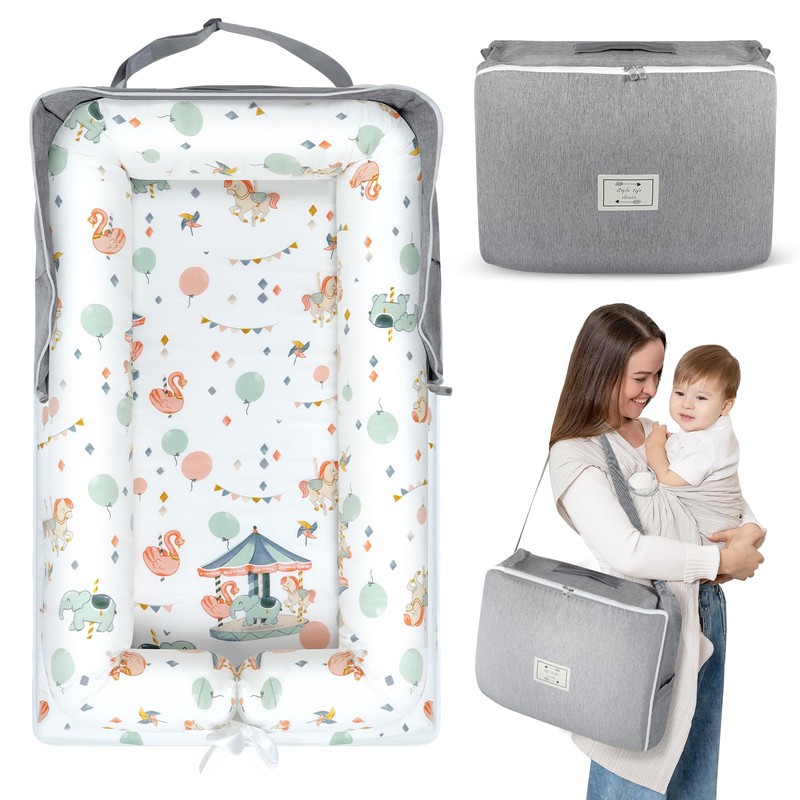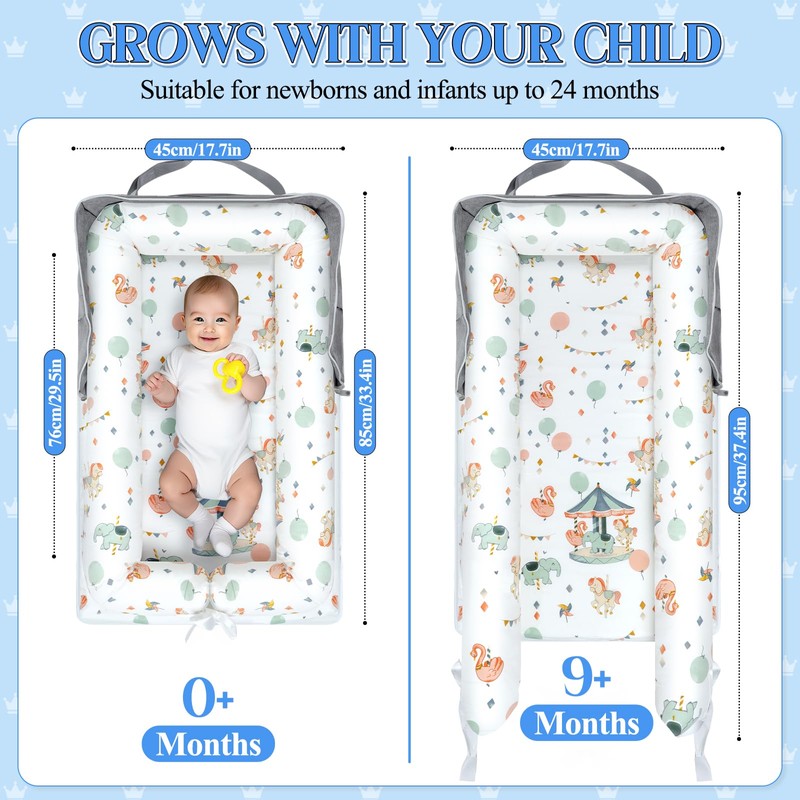 Baby Lounger for Newborn 0-24 Months, Portable Infant Lounger with Soft Breathable Cotton, Adjustable Size Lengthen Space Lightweight & Washable Essentials for Home (3. Carousel)