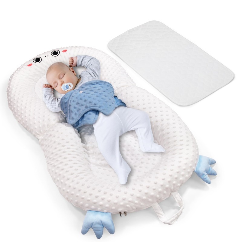 Snuggle Your Baby in Comfort and Style Provide your baby with a safe, cozy space to rest, play, or lounge. This versatile baby lounger for newborns and infants is crafted from soft, breathable materials, including 100% cotton and durable knitting polyester, ensuring ultimate comfort for your little one. Thoughtful Design for Every Moment The ergonomic design gently cradles your baby, promoting proper neck and back support and reducing the risk of flat head syndrome. With its lightweight and portable construction, it's perfect for travel, tummy time, or diaper changes-anytime, anywhere. Adorable and Functional Available in charming prints and colors, this lounger adds style to your nursery while being incredibly practical. The adjustable buckle grows with your baby, and the waterproof liner protects against spills for easy cleaning. Safe, Certified, and Parent-Approved Designed with your baby's safety in mind, this lounger is CPSIA-certified and free from harmful substances. Machine-washable covers make life easier for busy parents. A Must-Have for New Parents Whether you're at home or on the go, this baby lounger provides the ultimate comfort and support for your little one. Give your baby the best start with a lounger designed for both function and style.