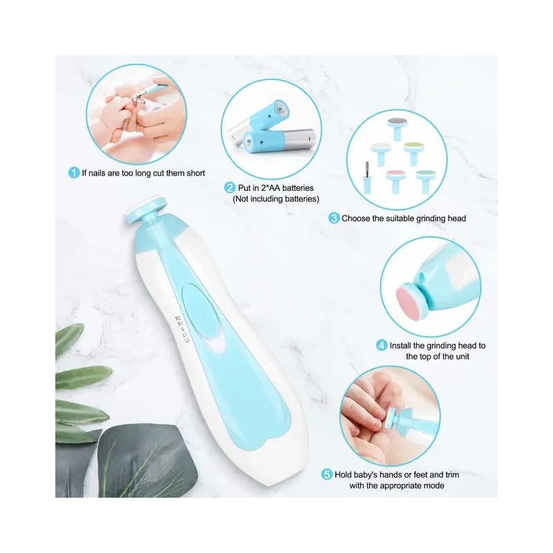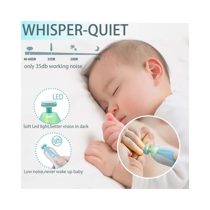 - VERSATILE DESIGN: Features 6 grinding heads suitable for different ages, providing customised nail care for your baby's delicate nails
