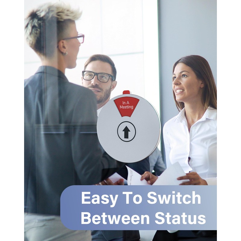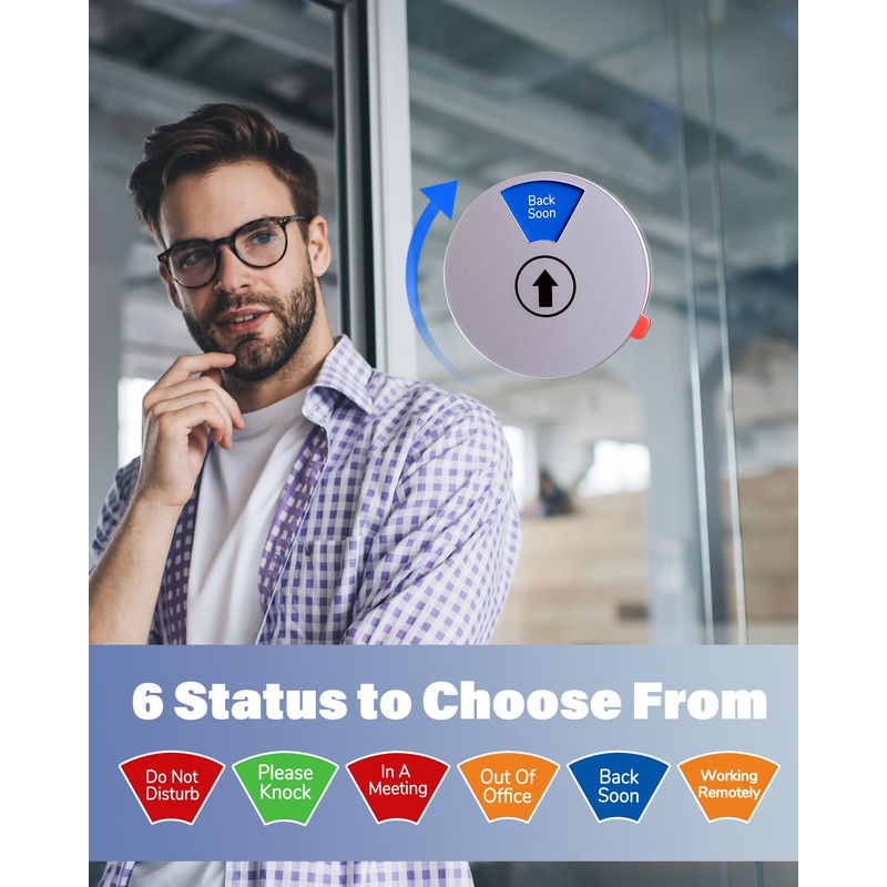 • 【6 STATUS OPTIONS】 - Color coded status in large and clear font. Easy to see from a distance. Available options include Working Remotely, Do Not Disturb, Out of Office, Please Knock, In A Meeting, Back Soon.