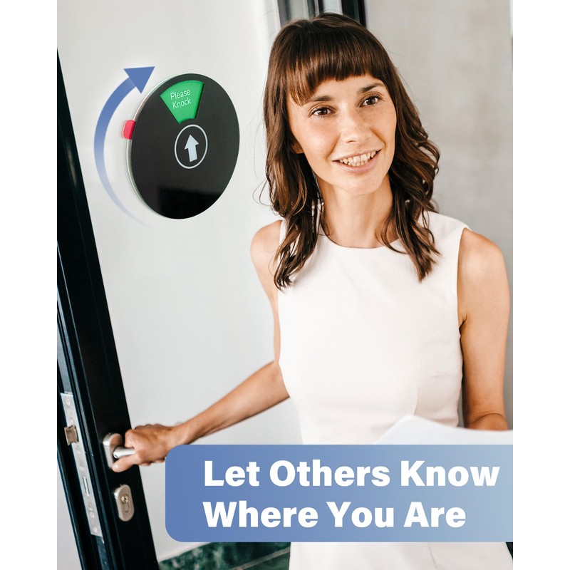 • 【EASY TO ROTATE】 - Simply spin the knob to rotate between status. Each status has a small magnet to helps securing the status in place. (NOTE: The sign’s magnet is intended for stabilizing the status only, and cannot stick directly to metal)