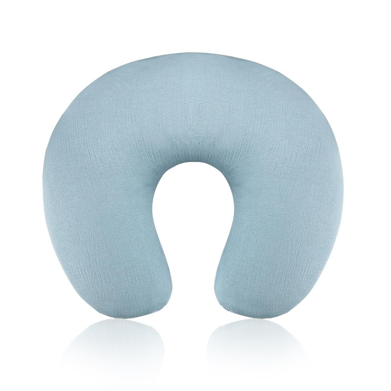 Baby Nursing Pillow Cover, Removeable Breastfeeding Pillow Slipcover, Muslin Nursing Pillow Case for Newborn Boys Girls, Soft Fabric Fits Snug On Infant, Washable & Breathable, Blue (Cover Only)