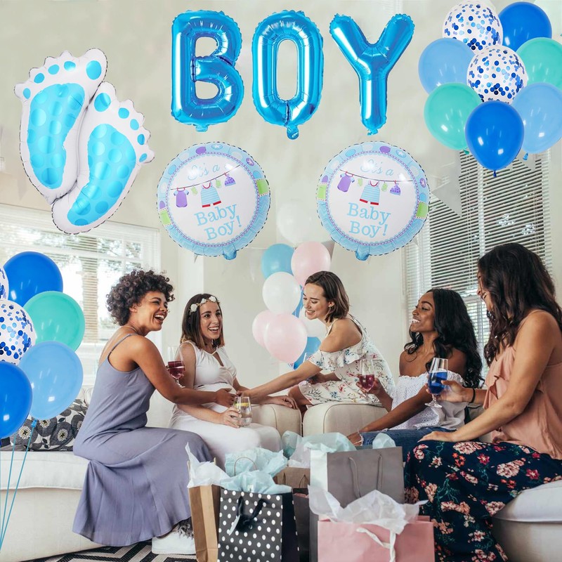- Baby shower party decoration boy kit: you will receive 7 blue letter balloons "Baby Boy", 1 blue baby bottle balloon, 1 blue footprint balloon, 1 blue stroller balloon, 10 latex balloons, 25 photo props and 1 shoulder strap.