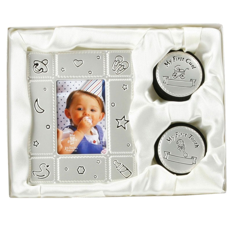 Baby Photo Frame & My First CURL Tooth Box Gift Set Birth Shower Christening New