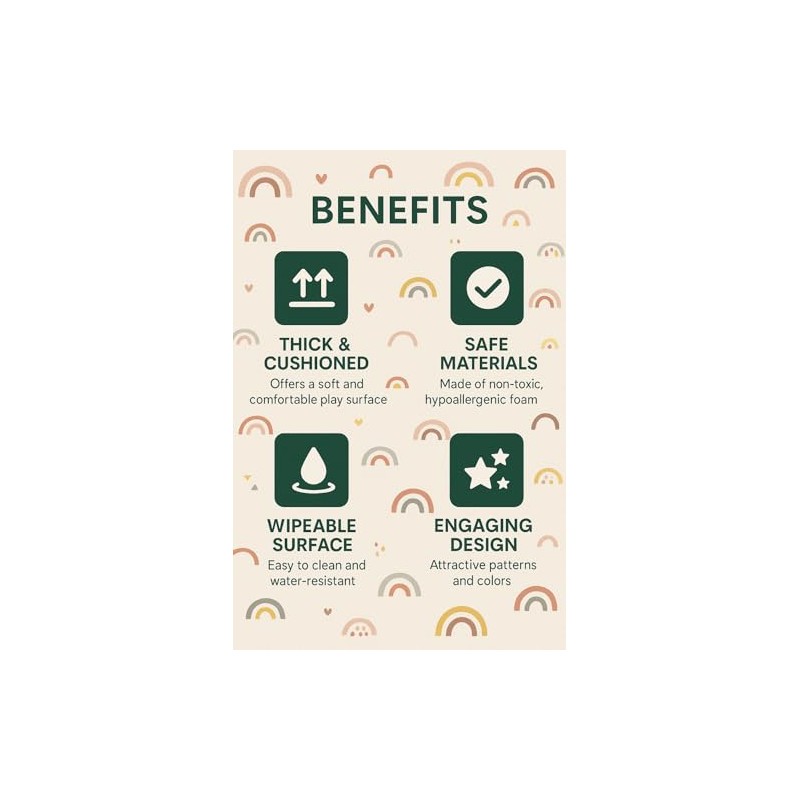 - Waterproof And Easy to Clean:The surface of crawling mat is 100% water-resistant, protect pattern color from falling off,durablewater and milk stains will not soak the mat,use wipe it with a damp towel to keep the playmat for floor clean as new