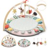 Suihuooo Baby Play Mat Activity Gym,6 Developmental Zones Tummy Time Mat, Foldable Wooden Baby Play Gym with 7 Detachable Sensory Toys for Newborn Brain Development, Essential Baby Shower Set