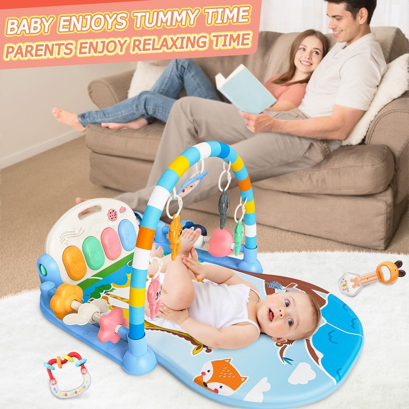 - Baby Early Development Play Mat: Tummy time mat supports kicking, grabbing, biting, looking, sleeping, sitting, lying, make tummy time fun. Baby play mat 0-12 months, promote sensory and physical coordination skills and fine motor skills, stimulate sensory ability. The unique musical piano key with light attracts the baby to touch, immediately emits a beautiful sound, and stimulates the baby's curiosity