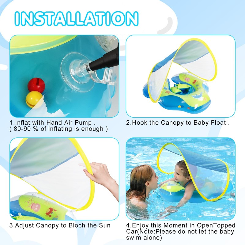 - 【Baby Float with UPF50+ Adjustable Canopy】 Keep your baby safe under the sun with our detachable UPF50+ canopy, blocking 98% of harmful UV rays. Adjust or remove the shade instantly for full-sun or shaded play—ideal for changing weather!