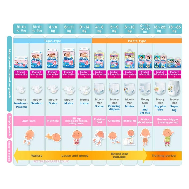 - Size of disposable diaper pants: as you have seen from product pictures, there are many sizes available just in moony brand. As babies grow, their postures and skeletal structures change. Also, the amount of urine increases and the state of stools changes too. That's why, as the size of the disposable pull ups gets bigger, not only do the length and width increase, but the dimensions and shape of the absorber change too. Moony pants come in a bundle with Americas Toys branded wipes.